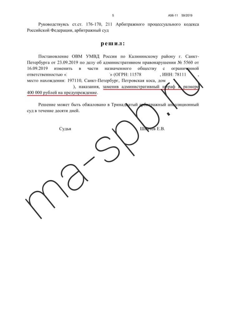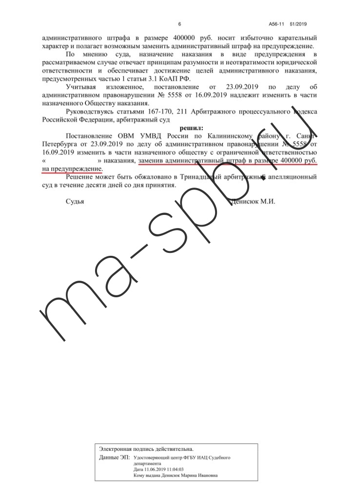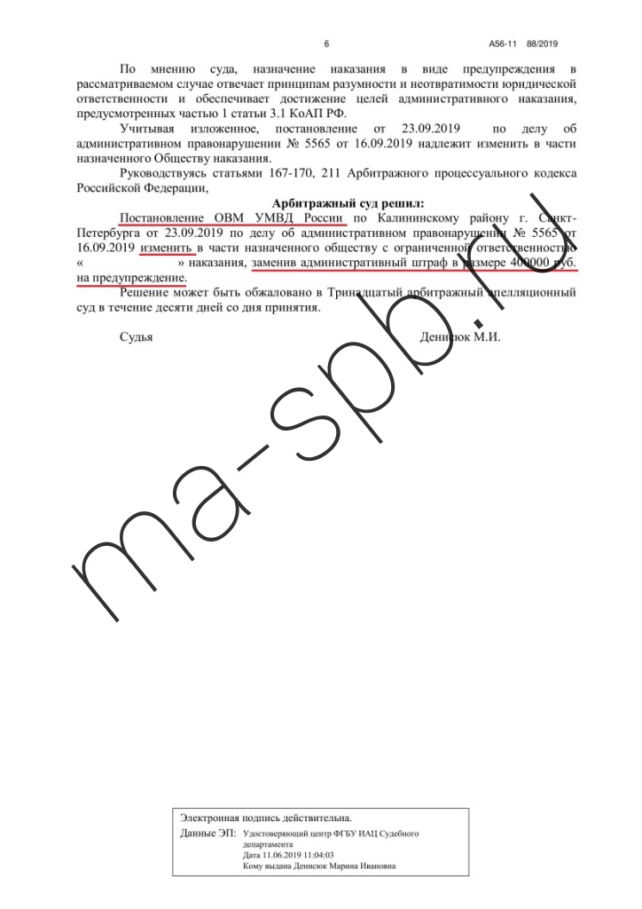 - Добиться минимального административного наказания без штрафа в 400 тысяч рублей