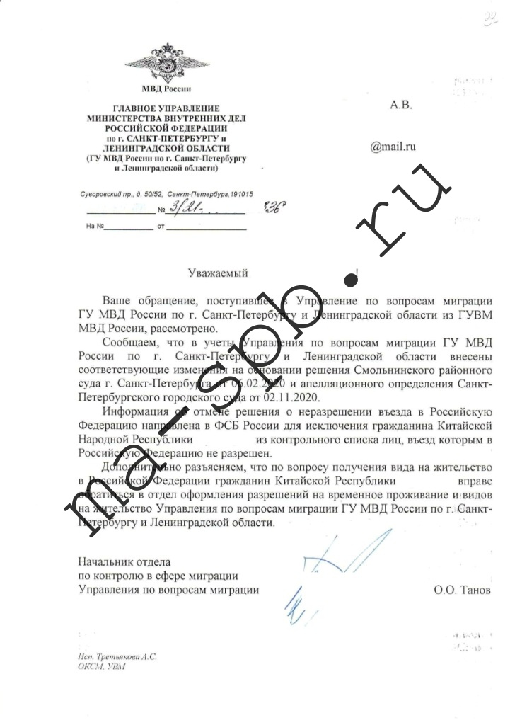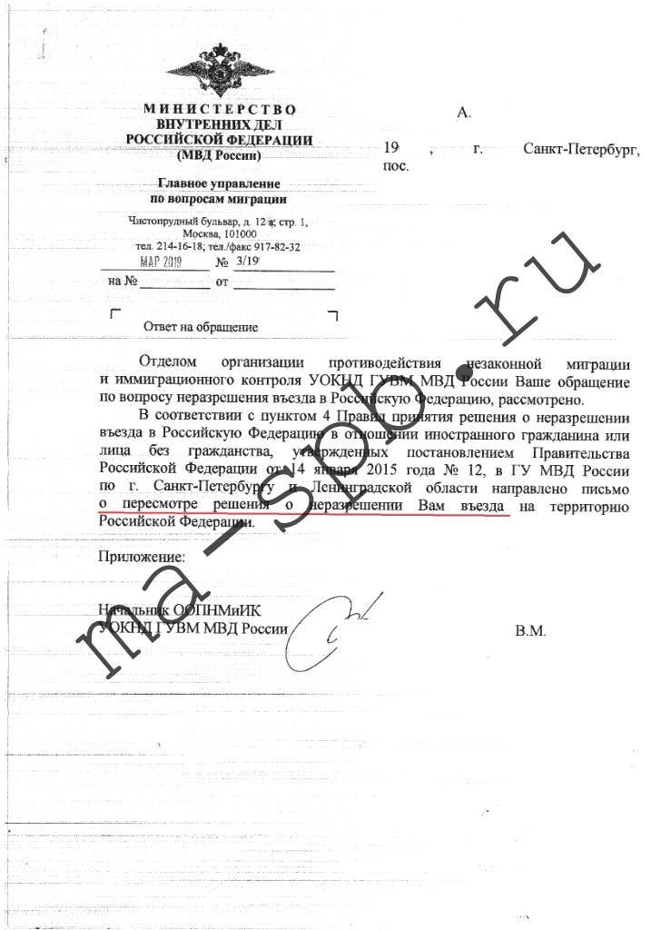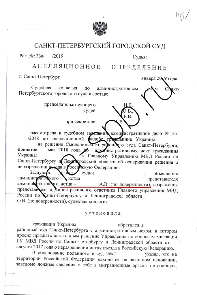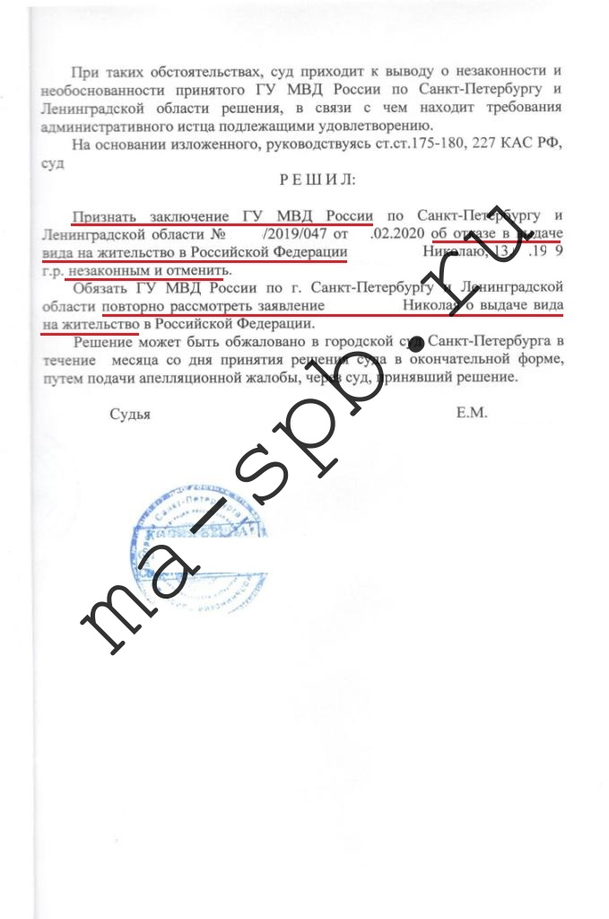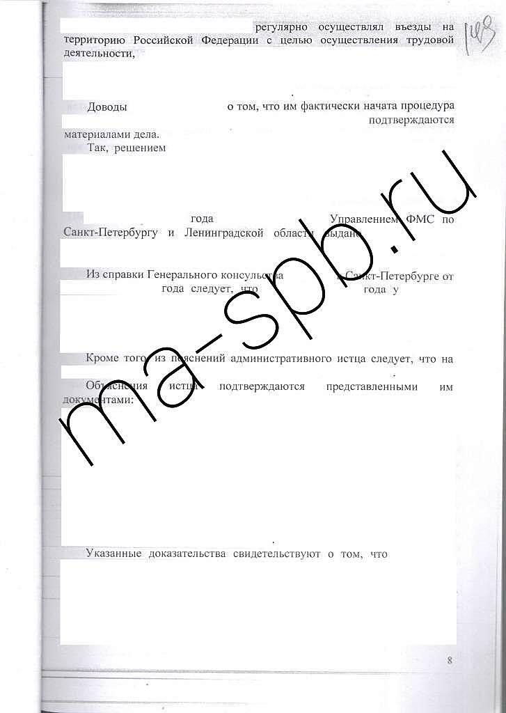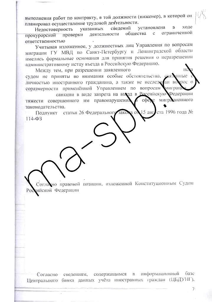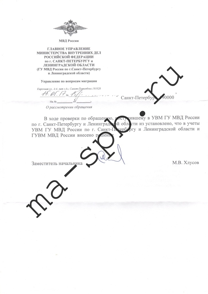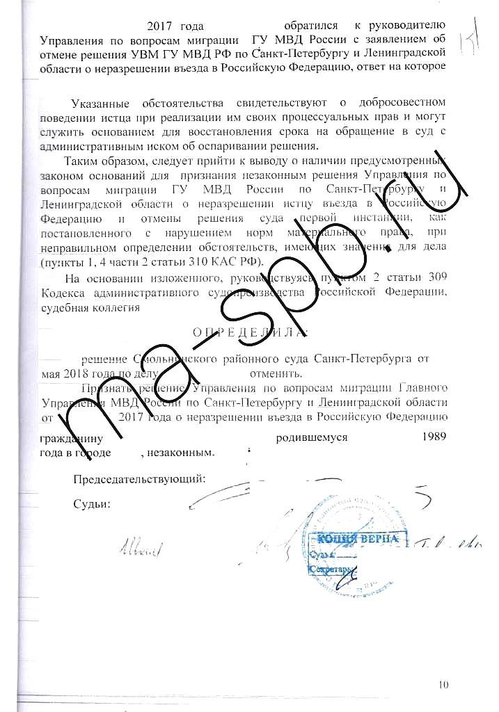 - Решение УФМС по г.Санкт-Петербургу отменить. Въезд разрешить.