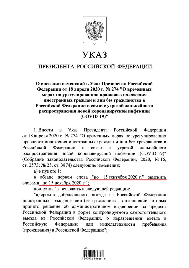 Действия Указа Президента № 274 от 18 апреля о послаблениях продлено до 15 декабря.