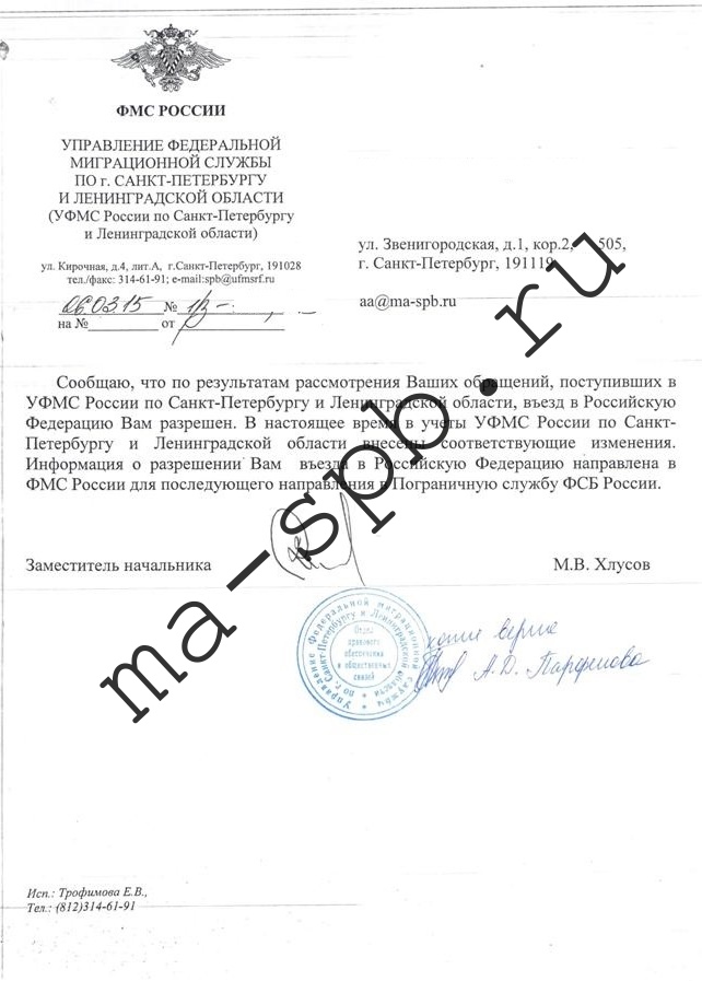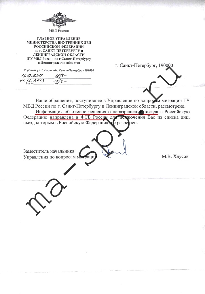 - Решение УФМС отменено без обращения в суд. Въезд в Россию разрешен