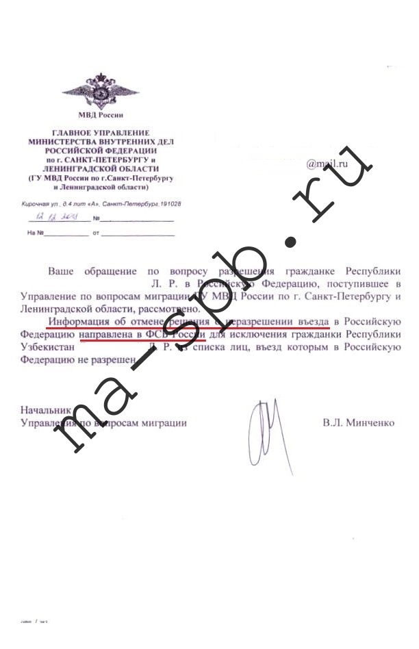 - август 2018 г. - гражданину Республики К. запрещен въезд в Россию. В Санкт-Петербурге осталась жена и дочь-школьница.