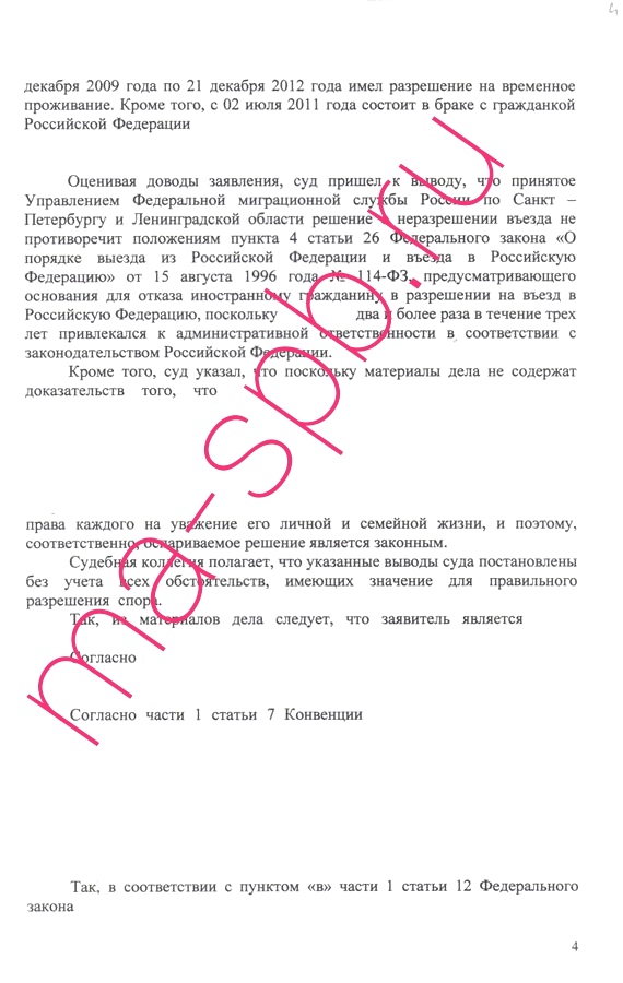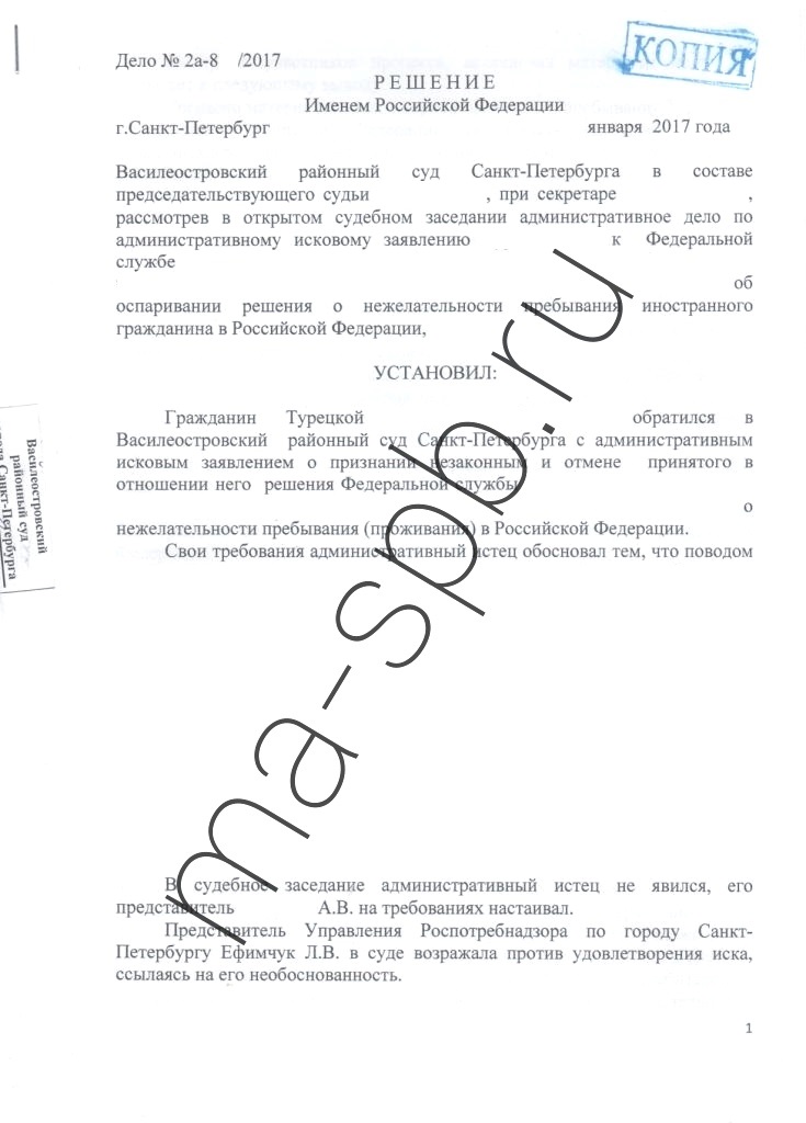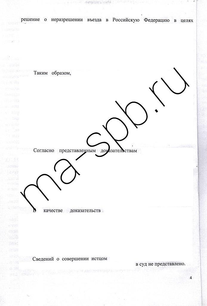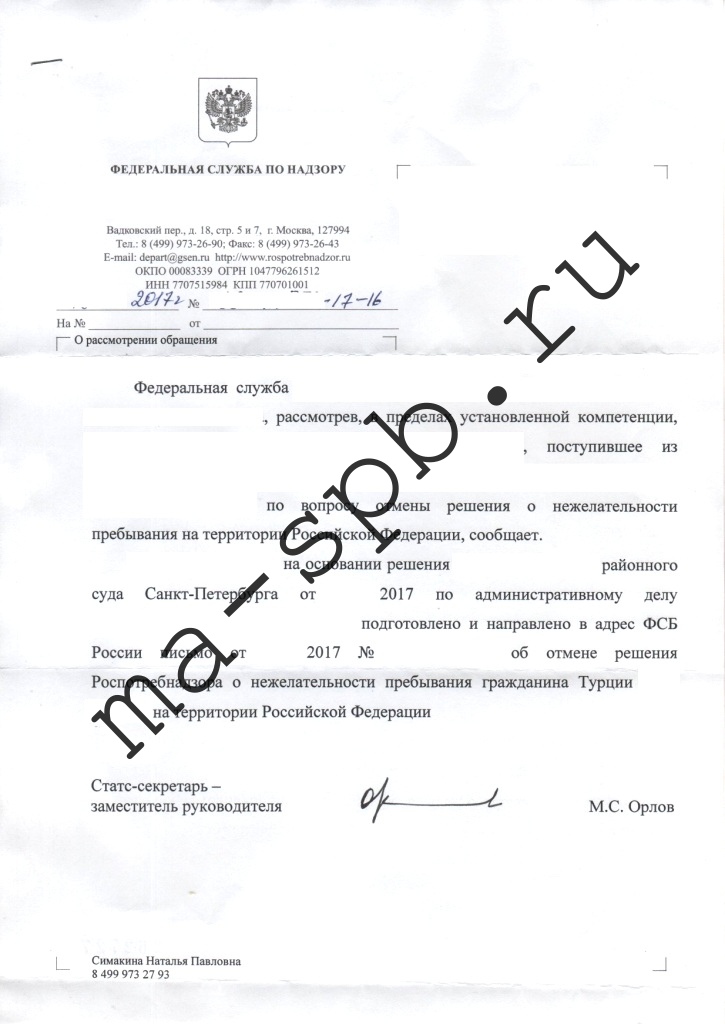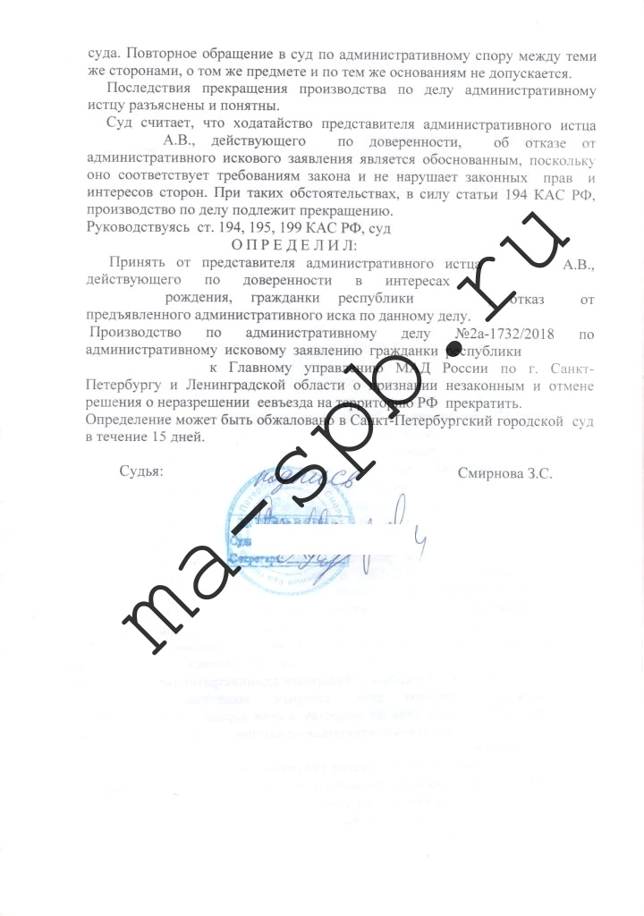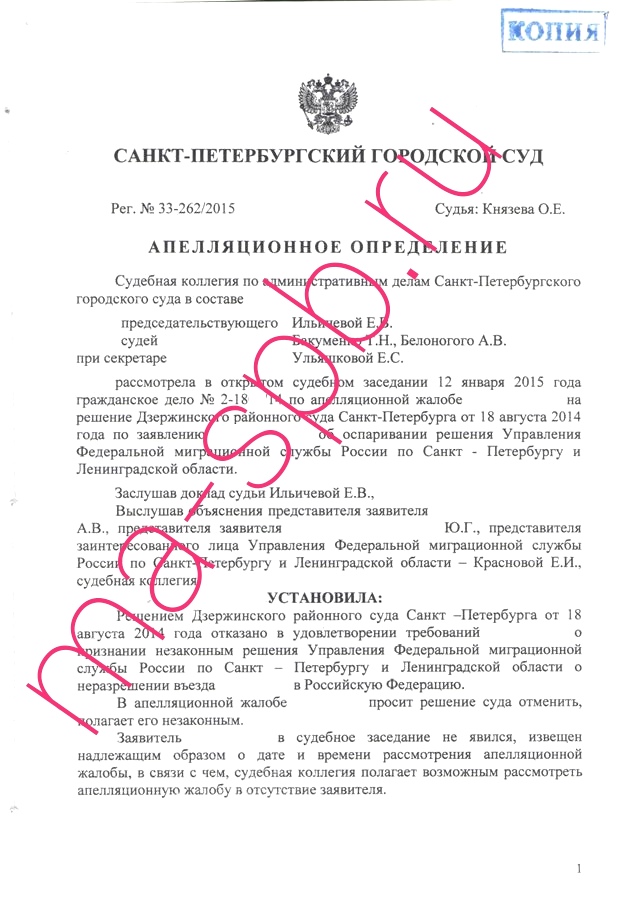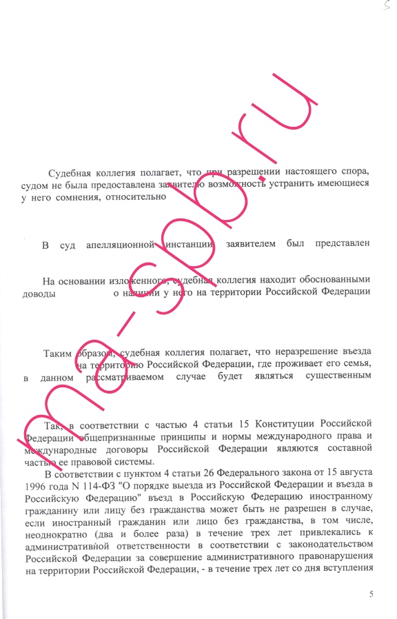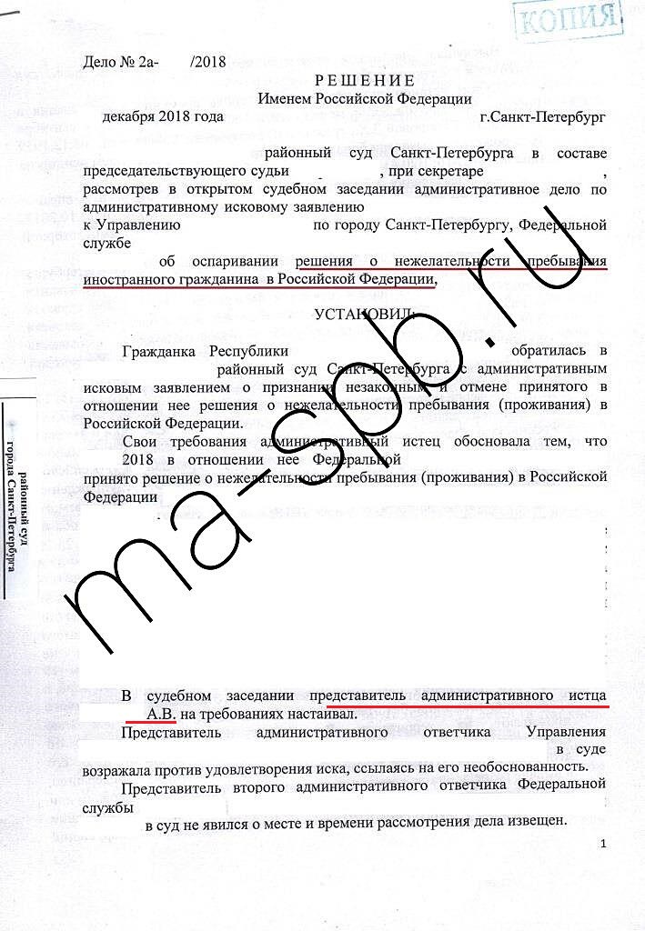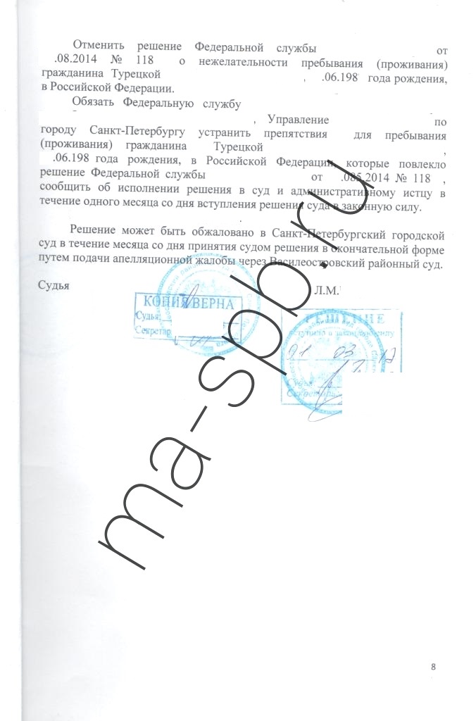 - Решение УФМС по г.Санкт-Петербургу отменить. Въезд разрешить.