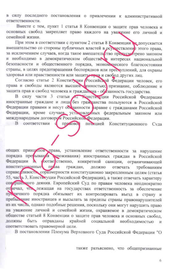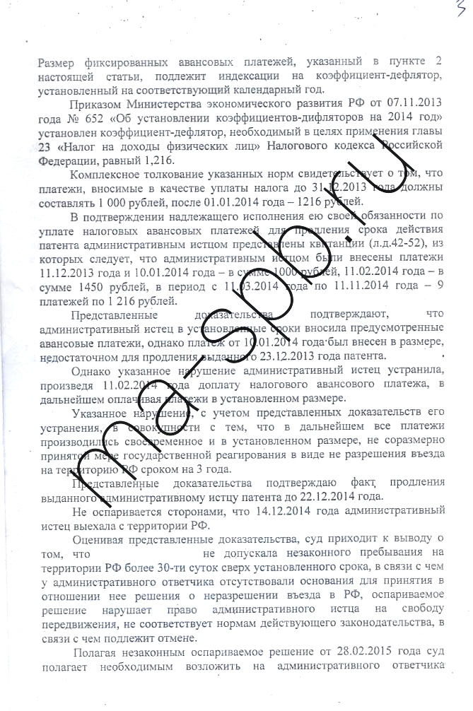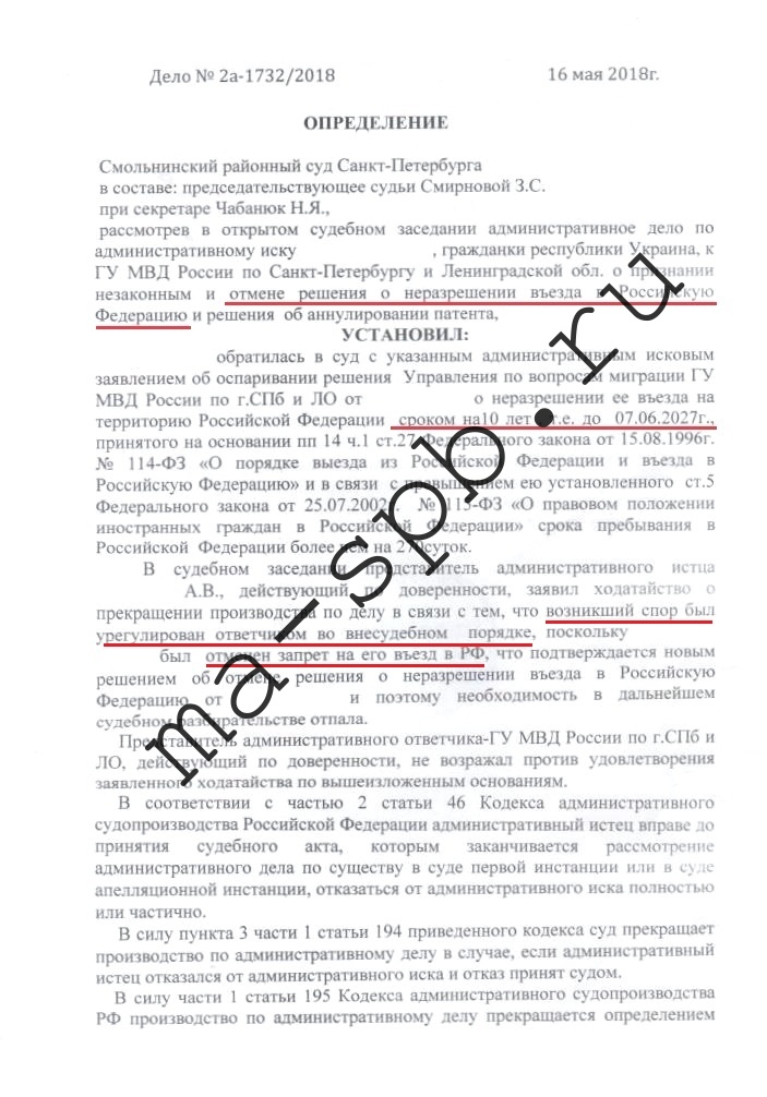 - 2017 г. - запрет на въезд в отношении иностранного гражданина отменен в суде. Ответчик уклоняется исполнения решения суда