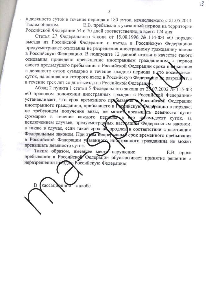 - август 2018 г. - в отношении гражданки Украины принято необоснованное решение о запрете на въезд. В России осталась семья