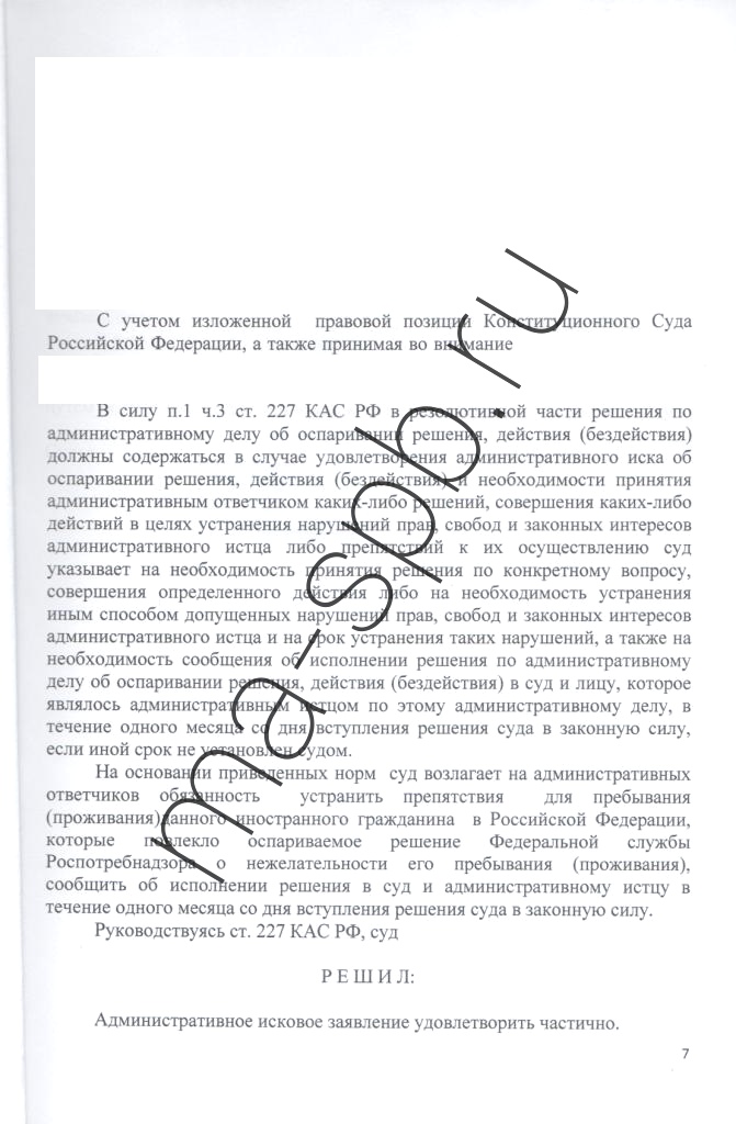 - Решение Федеральной Службы о нежелательности пребывания отменить. Въезд в Россию и оформление рабочей визы разрешить.